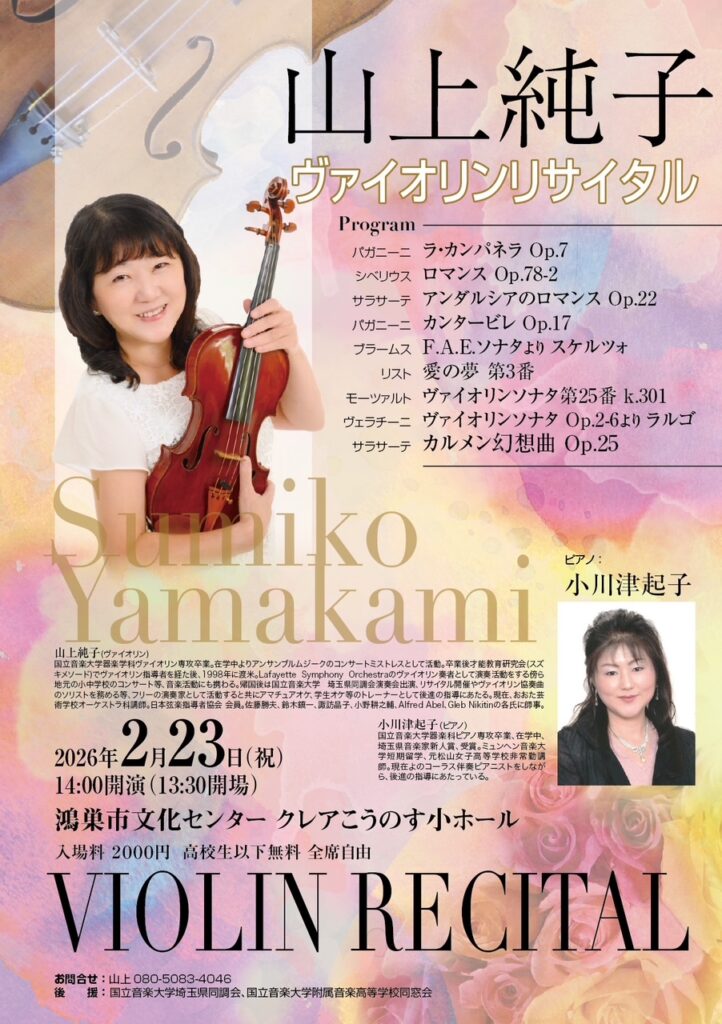 【2026.2.23開催】山上純子 ヴァイオリンリサイタル